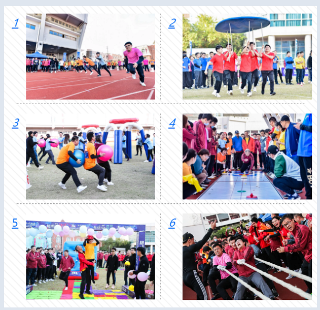 本屆運(yùn)動(dòng)會(huì)共設(shè)有六大比賽項(xiàng)目,分別為華虹速度(100米跑步),頂立“芯”天地(5人撐桿頂盤(pán)跑),同“芯”同行(5人聯(lián)合運(yùn)球投籃),一片冰“芯”(旱地冰壺),砥礪前行(8人大型組合接力)及眾志成“芯”(多股拔河),各隊(duì)隊(duì)員們凝心聚力、團(tuán)結(jié)一心、奮發(fā)拼搏,賽出風(fēng)格,賽出水平。